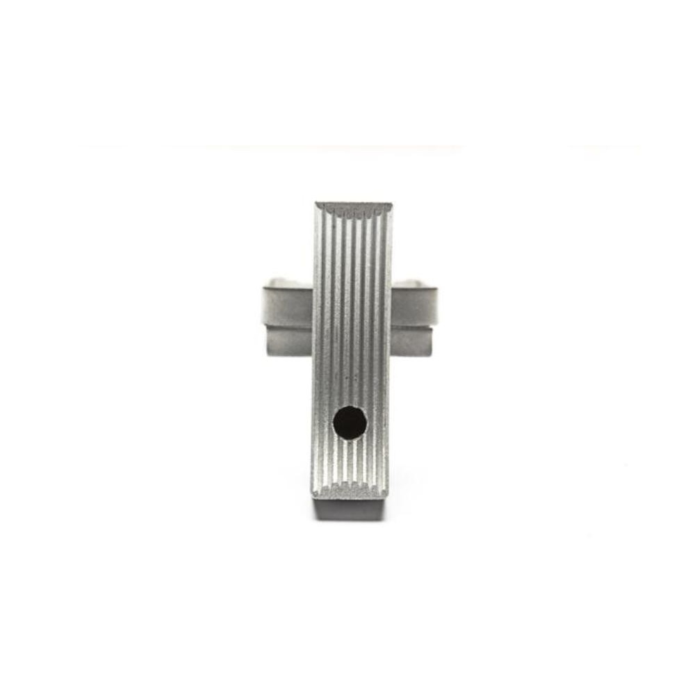 Weighing in at a little over 90 grains, the Ultralight trigger is an absolute necessity for a light yet safe competition trigger job or to produce the ultra-crisp trigger pull that Wilson Tactical pistols are noted for. The pad is machined from aircraft grade aluminum with a serrated front. It is then given a low luster silver matte finish. The bow is hardened stainless steel which has been polished to reduce bow to frame friction. It features an adjustable over travel screw for precision over travel adjustment. This is our finest long adjustable match trigger. Minor fitting required.