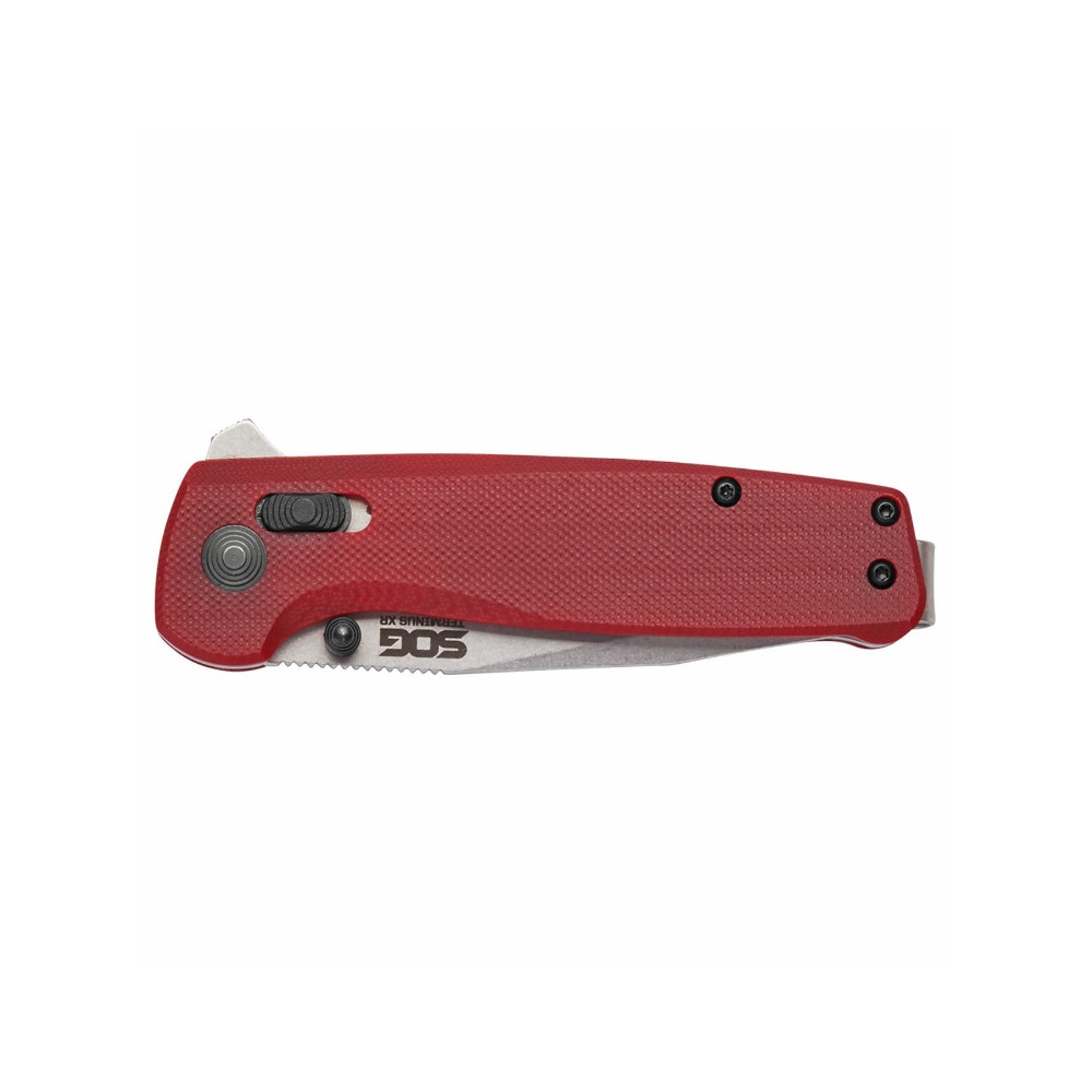 For those looking for something a little more rugged, theres Terminus XR G10. Stripped, back, straightforward, clad with an honest G10 handle and stone washed hardware. The XR locking mechanism is snappy and adjusts over lifespan of the knife. The D2 steel blade features high toughness and wear resistance. The knife is fully ambidextrous, with swappable belt clip for left or right wear. Three different opening methods: thumb stud, XR Lock, and kick. The Terminus XR is setting a new bar for EDC.