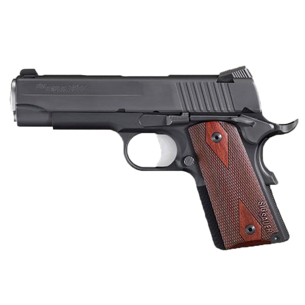 The 1911 Carry is available in either natural stainless or Nitron finish and comes with low profile night sights, checkered front strap (25-lpi) and mainspring housing (20-lpi) with lanyard attachment point and custom wood grips. The grips are either gray diamond wood on Stainless model or rosewood on the Nitron version. Each of these 8+1 capacity Carry model 1911 pistols features a shortened stainless steel slide, stainless steel frame, match grade barrel, hammer/sear set and trigger.