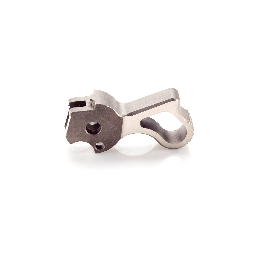 The Skeletonized Ultralight Hammer is fully CNC machined from solid stainless steel bar stock and heat treated to R/C 48-52 to produce the finest 1911 hammer on the market. This hammer features a skeletonized spur for minimum weight and fastest possible lock time, hammer hooks cut to .020 inch with 8 RMS ground finish and narrow half-cock notch to prevent sear nose damage.