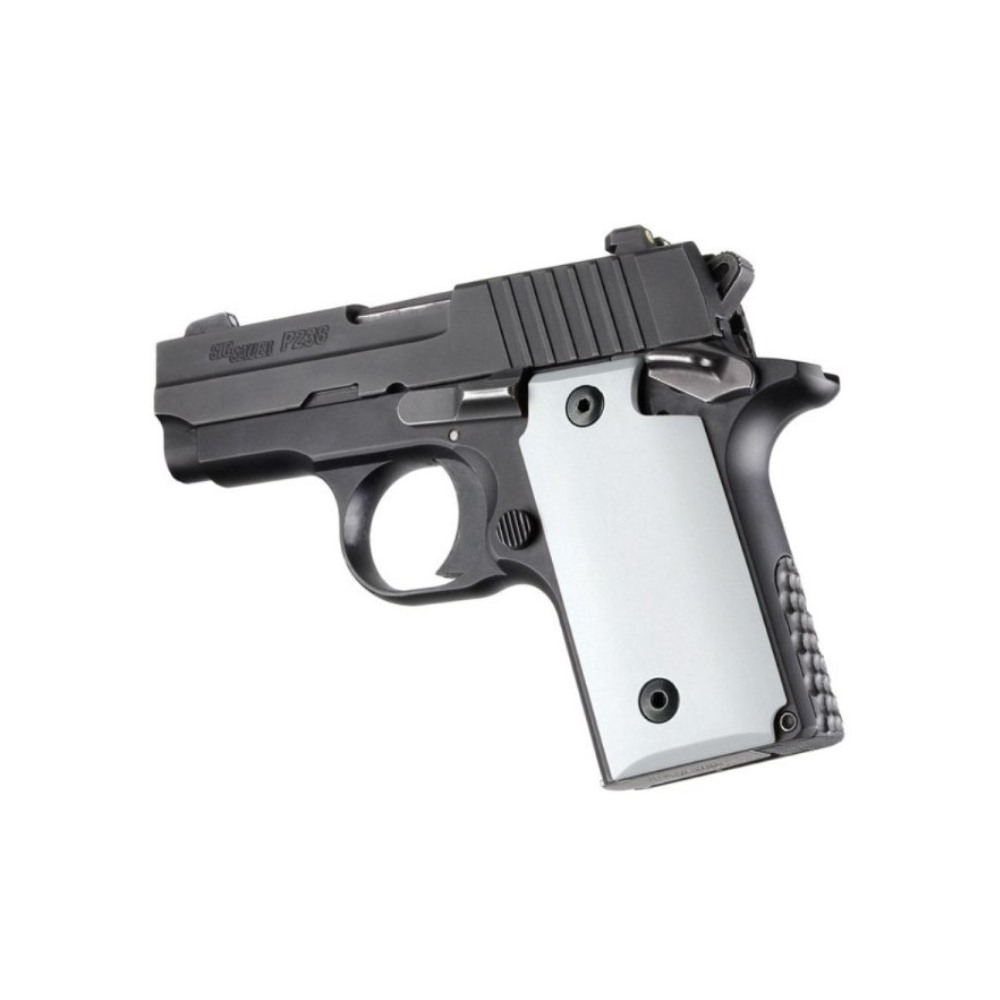 Sig Sauer P238 Aluminum Grip is part of Hogues unrivaled selection of aluminum grips. This grip is precision machined from 6061-T6511 Aluminum. Hogue quality tests and inspect every batch of Aluminum material before, during and after every phase of the manufacturing process, to ensure that the Aluminum Series Grips for SIG Sauer P238 meets the highest standards of quality.
