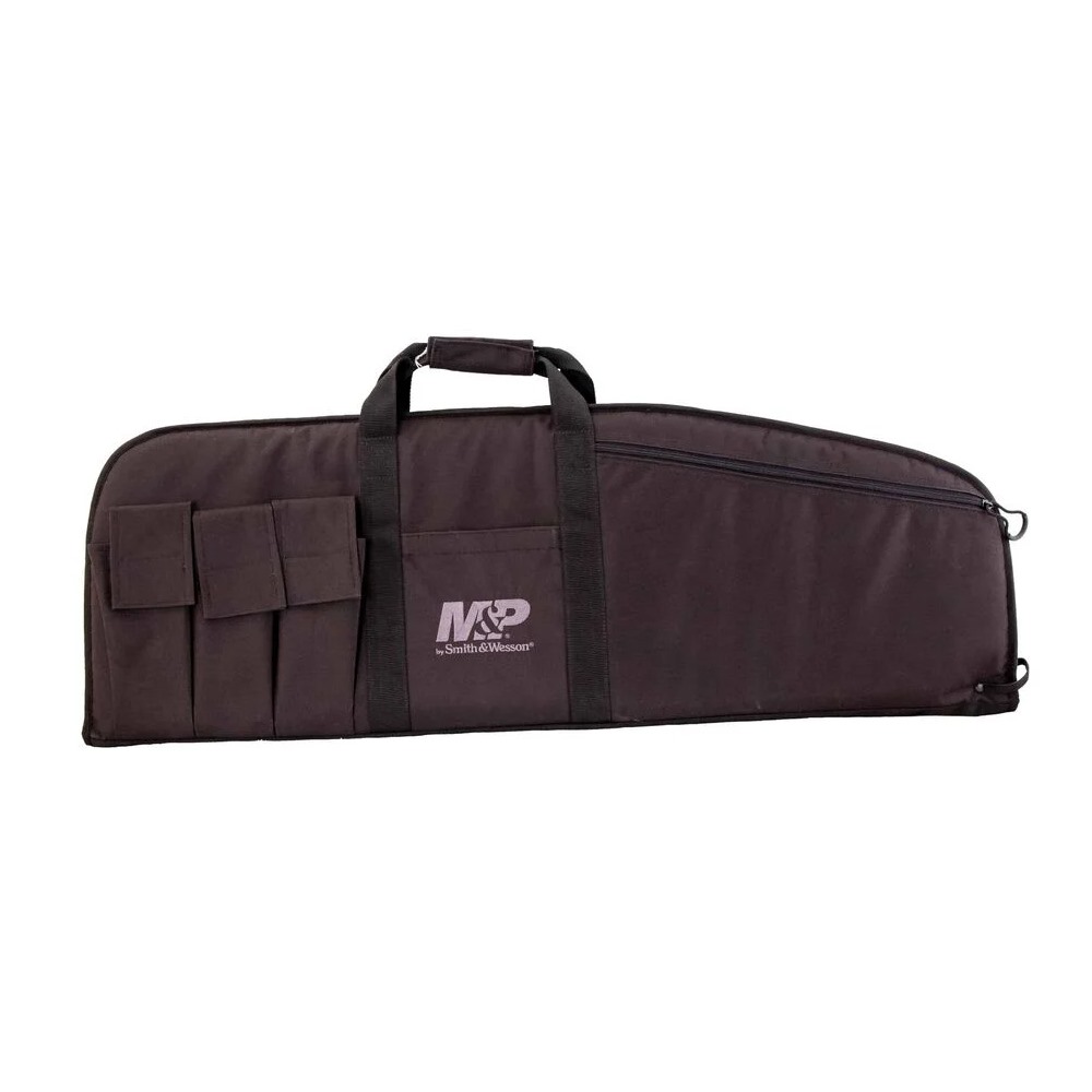 M&P DUTY SERIES GUN CASE SMALL 34 INCHES LONG WITH 3 MAGAZINE POUCHES WITH HOOK AND LOOP FLAP CLOSURES.