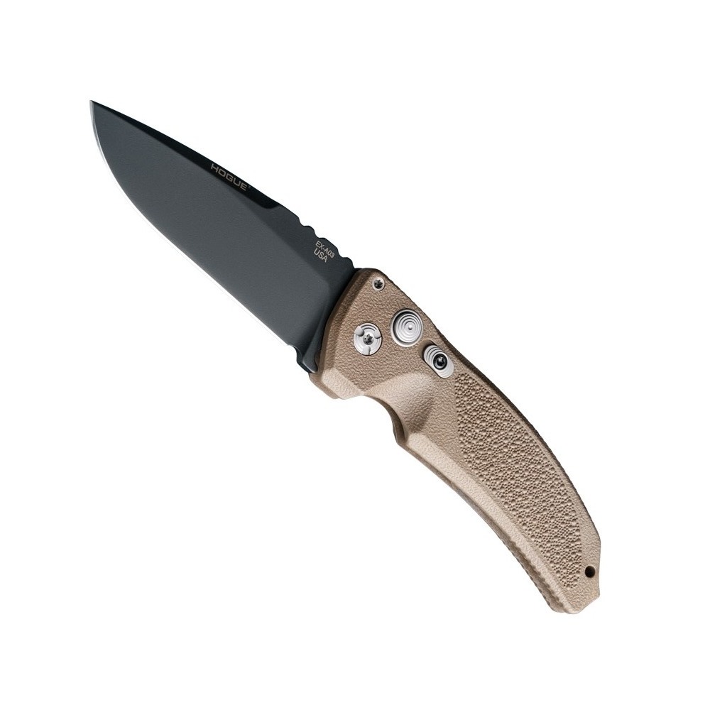 EX-A03 AUTOMATIC FOLDER 3.5 inch DROP POINT BLADE - BLACK CERAKOTE, MATTE BROWN POLYMER FRAME