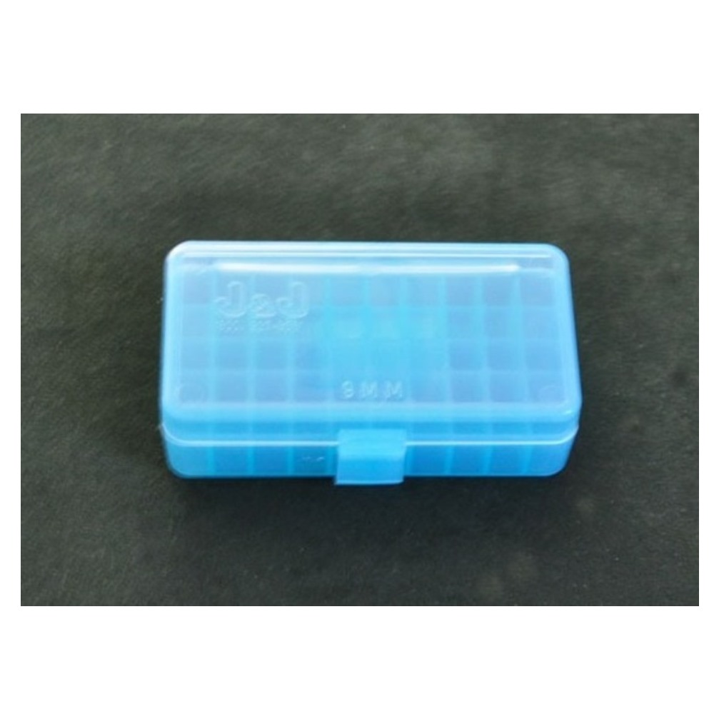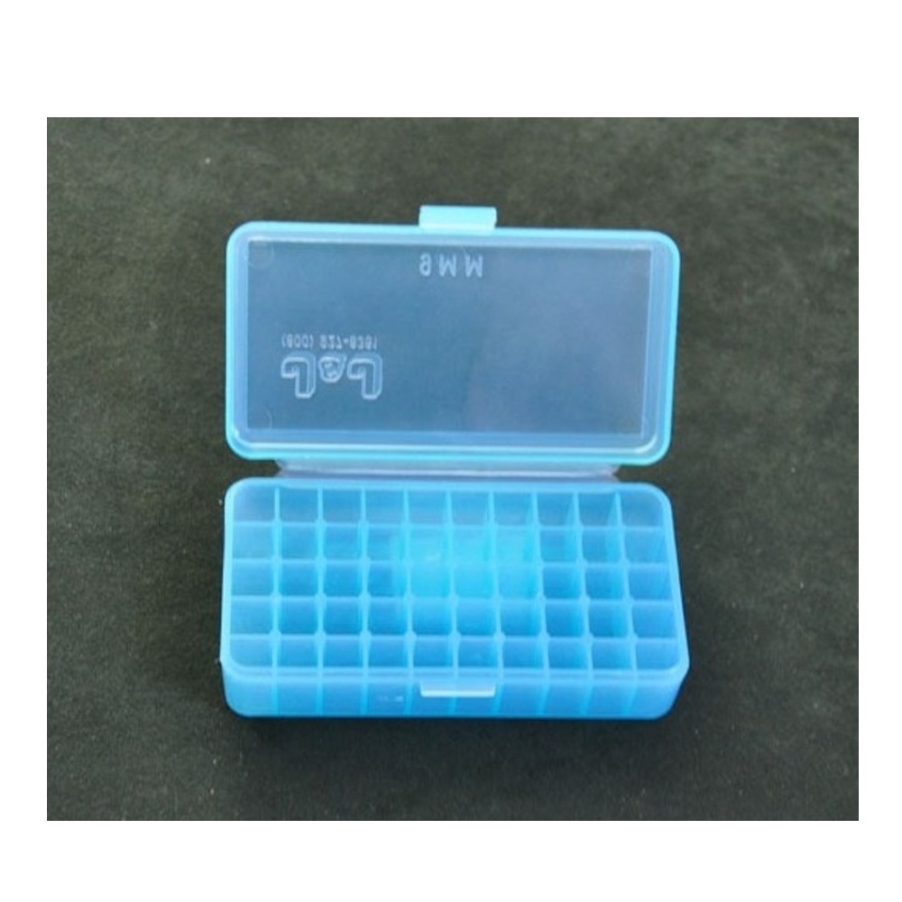 PISTOL AMMO CASE HINGE TOP 50 RDS. FOR 9MM / .380 AUTO BLUE