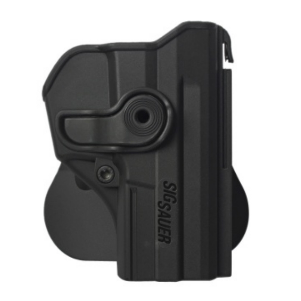 Retention Roto Holster for Sig Sauer SIG Pro SP2022/SP2009 FEATURES AND BENEFITS: Comfortable contoured fit Retention with zero time to disengage Sits where your trigger finger normally slides at "The Ready" Simply depress the lever and remove the firearm Fully adjustable for cant Rotates 360 degrees for every application (small of back, cross draw) Made of durable black polymer Adjusts with a simple allen key Designed for military & police personnel. Great for civilians & off duty officers Detachable single magazine pouch rail Right handed Polymer Holster Protective sight channel MADE IN ISRAEL