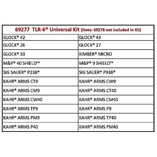 The TLR-6® is designed to securely attach to a variety of subcompact handguns from the following manufacturers: GLOCK®, Smith & Wesson® M&P SHIELD®, Kahr®, SIG SAUER®, Kimber®, Springfield Armory®, Taurus®, Colt®, Remington®, and Para USA. Rail-mounted 1911 models are also available.