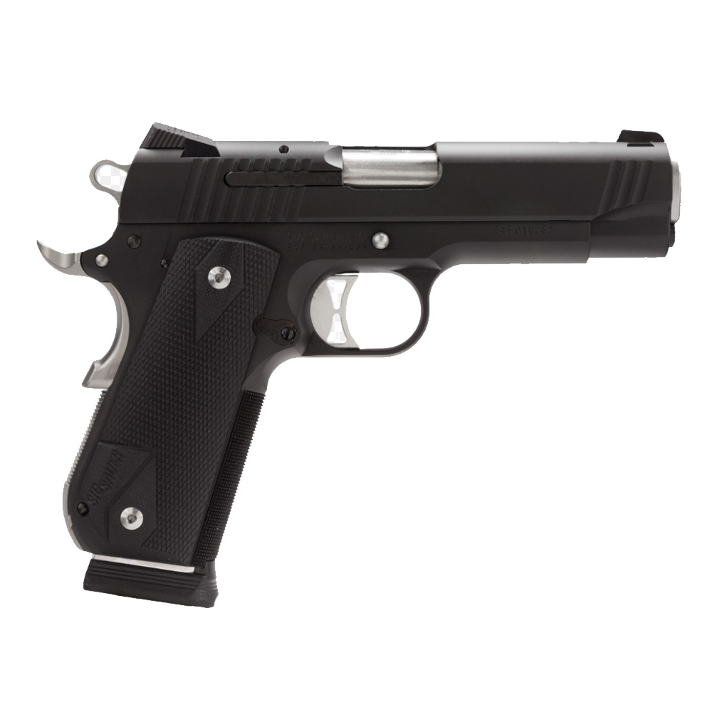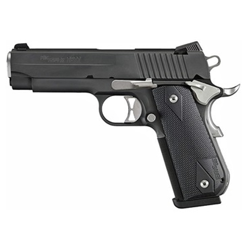 The legendary 1911 design has been brought into the 21st century with the refinements todays shooters demand, The 1911 Carry Nightmare pistol from SIG SAUER, features a stainless steel frame with rounded grip and mainspring housing. Each pistol is built using premium internal parts including a match grade barrel, hammer/sear set and trigger. The all Nitron coated frame and slide is contrasted with natural stainless controls, barrel bushing, extractor and grips screws.