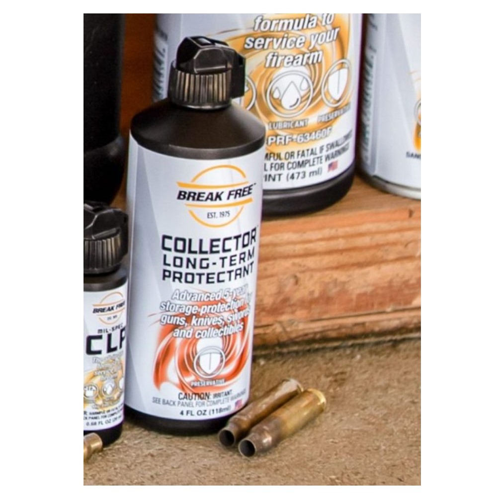 Collector is a long term storage preservative for firearms and other sports equipment. It was developed for the military to protect weapons for up to 5 years in storage. Can be used on all metals and finishes, will not break down to form waxy residues. Weapons can be fired without cleaning or removing Collector. Outstanding for preventing damage or rust spots from moisture or finger prints.