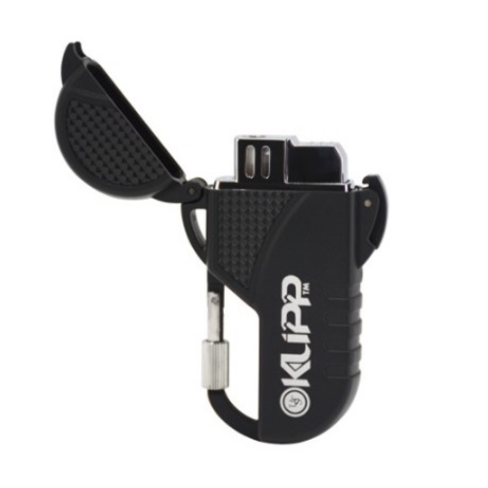 The Klipp Lighter is a high-performance windproof butane lighter with integrated biner design is always ready when you need it. The Piezo-electric ignition lights up to 30,000 times and works when wet. It features a Zinc die cast wind guard and lever.