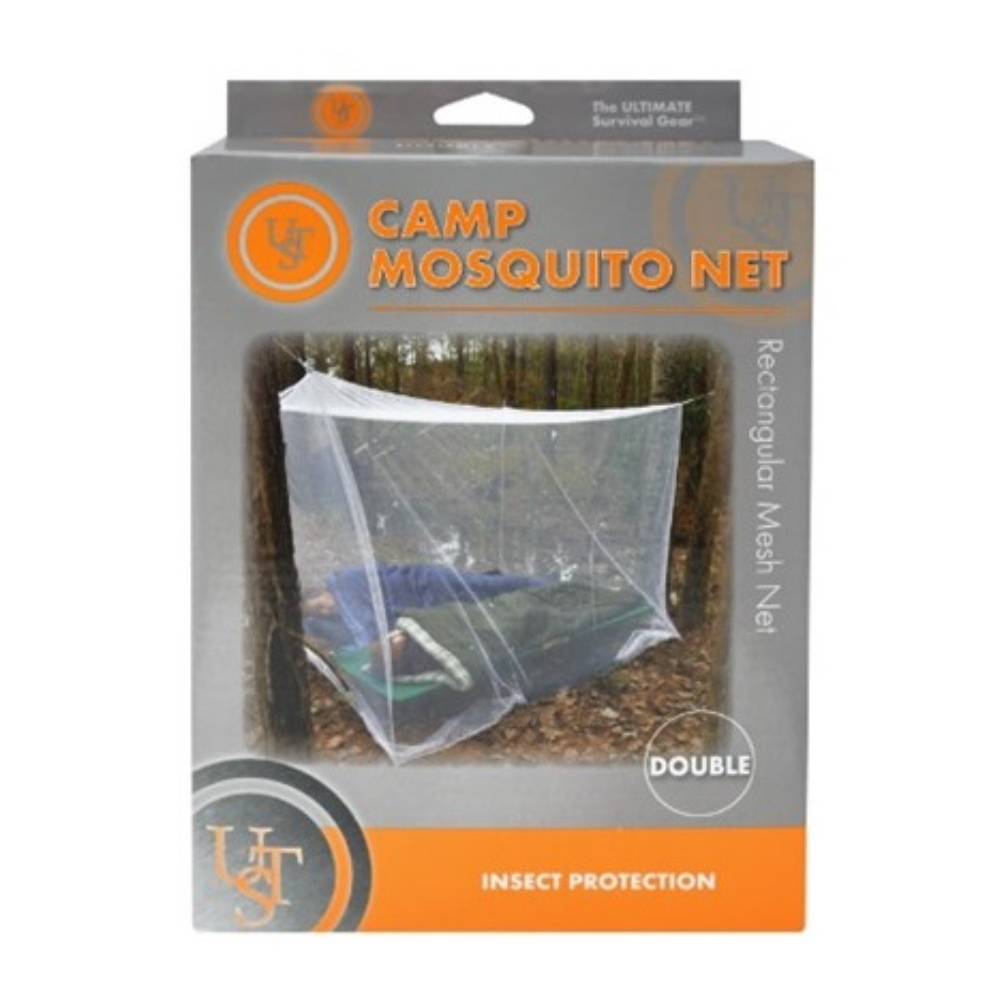 A Camp Mosquito Net by UST, fine mesh polyester protects against insects without blocking airflow or visibility. The two-person camping mosquito net is a rectangular net that features 6 suspension points and easily fits over cot(s) or sleeping bag(s). Which easily fits over one cot or sleeping bag and hangs securely via four suspension points. The fine mesh protects against insects without blocking airflow or visibility, providing you a bug-free rest. It sets up quickly using ropes and poles (not included) or tying around trees. It will make your outdoor recreation more pleasant. Size: LxWxH: 83" x 63" x 70" (210 x 160 x 178cm)