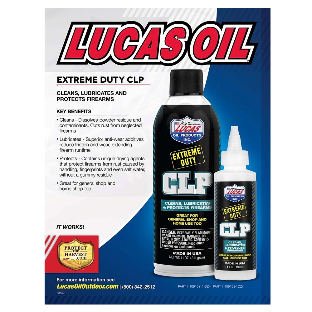 Used and recommended by major firearms manufacturers, Lucas Oil Extreme Duty CLP is designed to clean, lubricate and protect your firearms in one simple step.