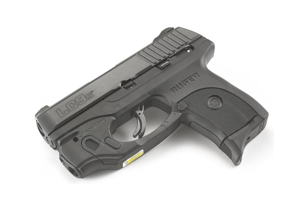 The striker-fired Ruger LC9s features a short, light, crisp trigger pull for faster shooting and improved accuracy. The LC9s provides slim, lightweight and compact personal protection with a steel slide, and a high-performance, glass-filled nylon grip frame with aggressive checkering. It includes a finger grip extension floorplate that can be added to the magazine for comfort and grip. The frame has a black finish, while the slide and barrel have a blued. The slide also has dovetailed, high-visibility sights with drift adjustable rear and fixed front. This model features a LaserMax GripSense Activated 650 nm red laser and 100 lumen white light.