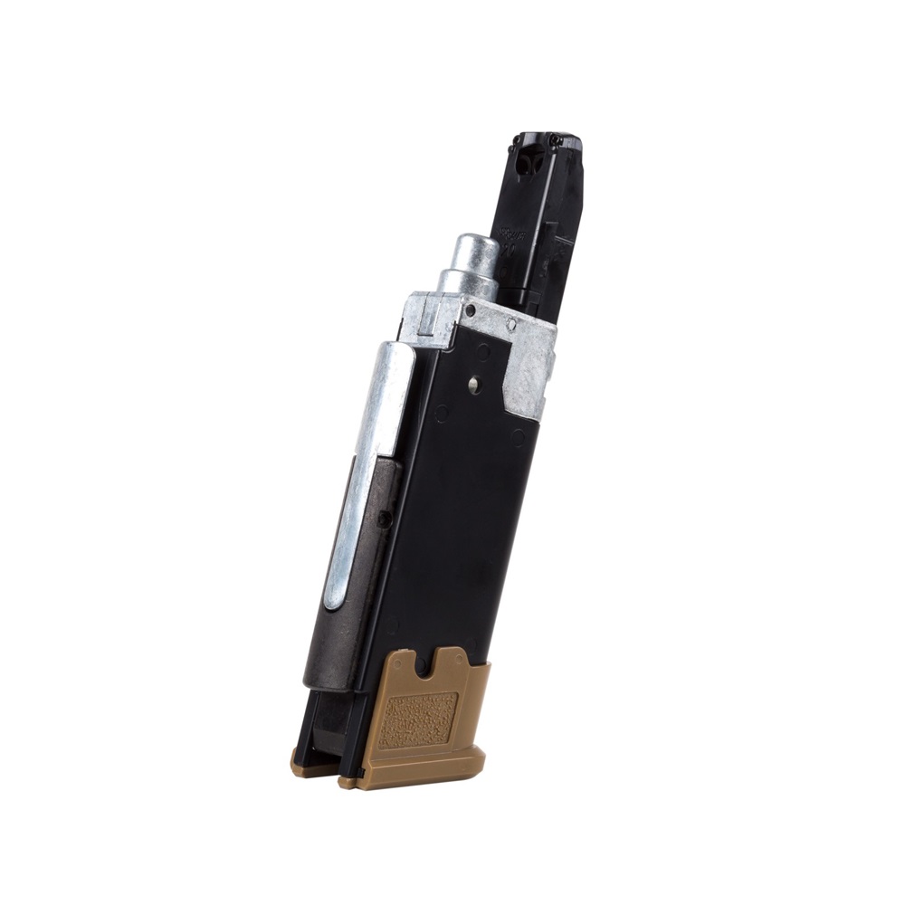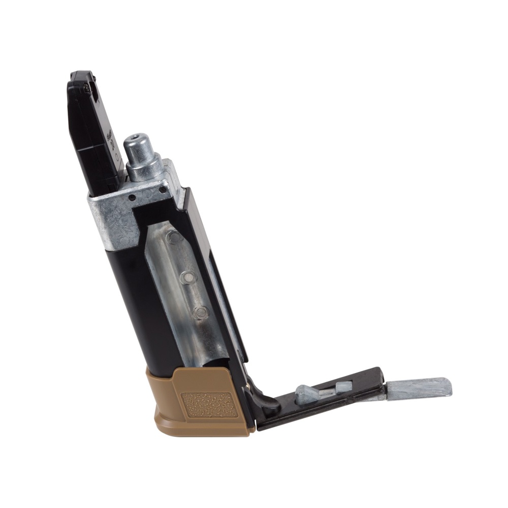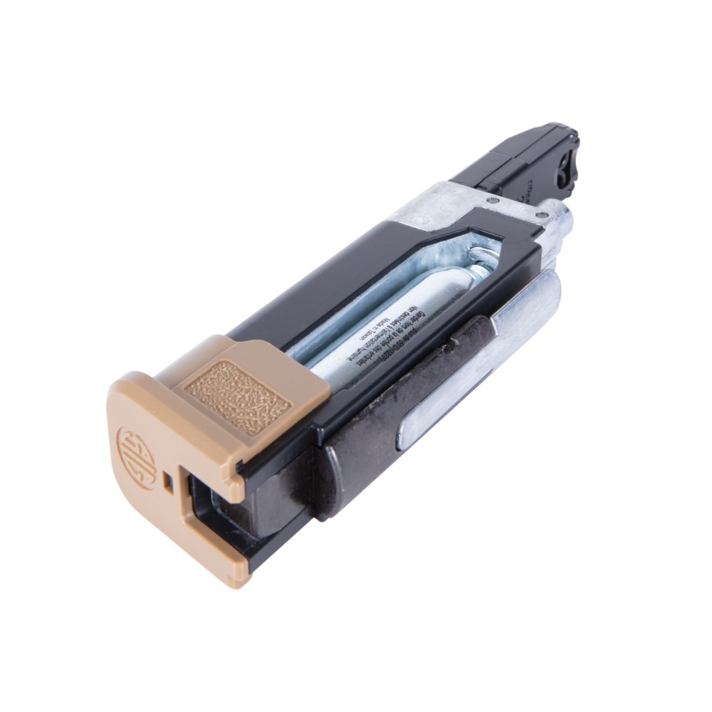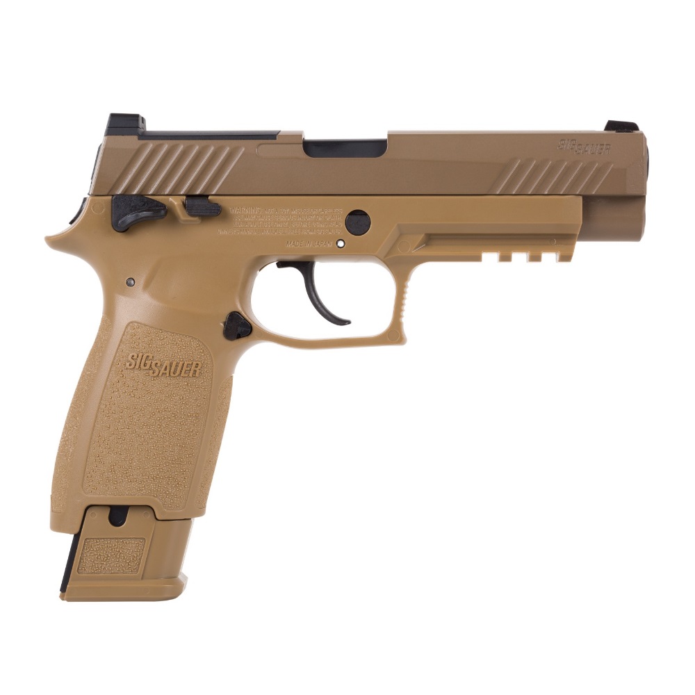 The Sig Sauer P320-M17 CO2 Powered Air Pistol lets you train with a CO2 replica of the semi-automatic pistol that was chosen by the US military for the new US service pistol–the M17. The P320-M17 air pistol is chambered for .177 pellets and has a 20-round pellet magazine. The metal slide utilizes a blowback action to cycle pellets into the chamber and CO2 power propels the pellets up to 430 fps. The pistol features open sights and the polymer frame has a built-in Picatinny rail for attaching aftermarket laser sights or tactical lights. The Sig Sauer P320-M17 CO2 Powered Air Pistol is an authentic, economical way to train both indoors and outdoors. CO2 and pellets sold separately.