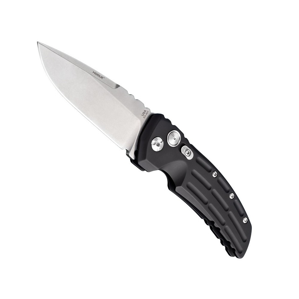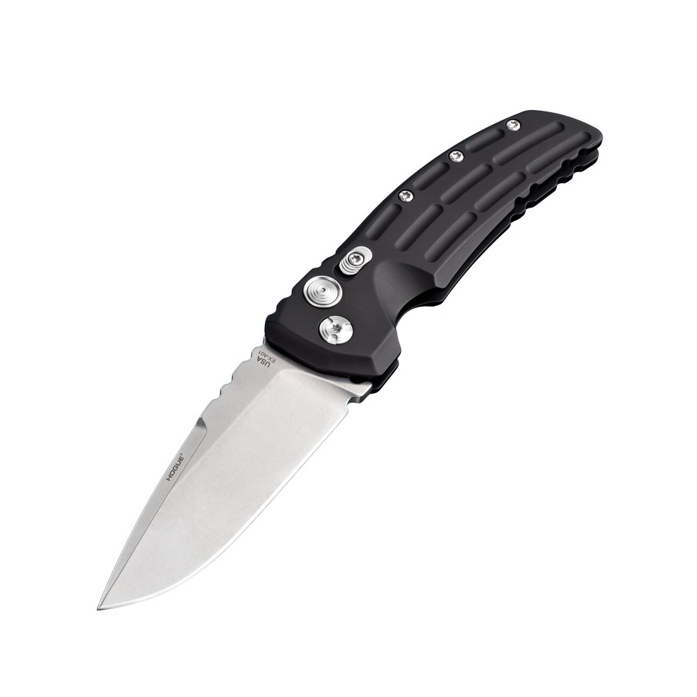 EX-A01 AUTOMATIC FOLDER 4.0 inch DROP POINT BLADE - TUMBLED FINISH, MATTE BLACK ALUMINUM FRAME
