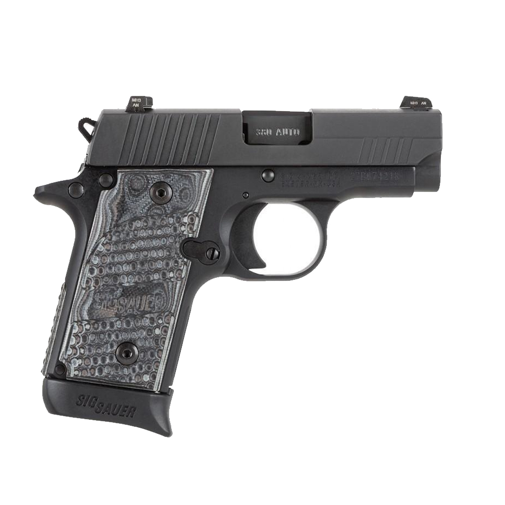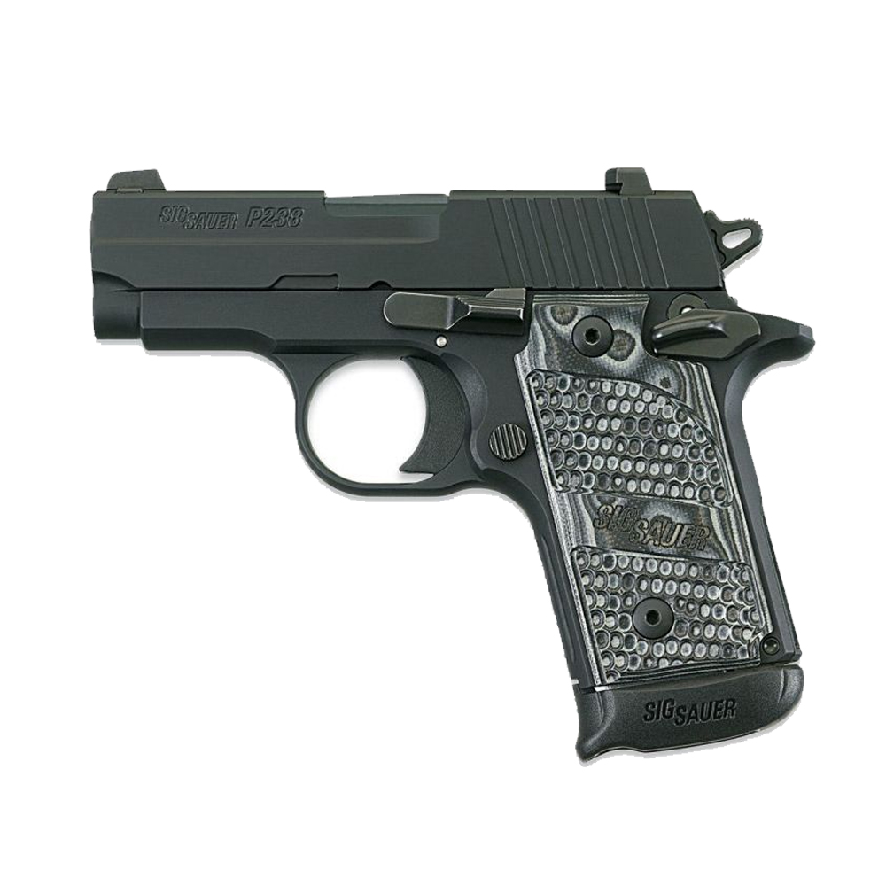 SIG SAUER P238 is the ultimate firepower in an all metal frame concealed pistol. The P238 is built on an alloy beavertail style frame, Nitron® finished slide and Hogue Extreme Series G-10 grips for comfort and a secure hold during rapid-fire usage. The magazine combines a 7 round magazine tube with the ergonomically designed X-Grip® magazine adapter, providing additional control and increased capacity.