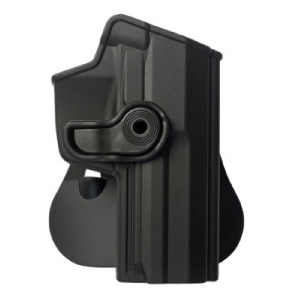The IMI Defense Level 2 H&K USP Full Size 9mm/.40 Holster "IMI-Z1140" combines great modularity with structural strength, a perfect fit and user safety. The safety mechanism is a trigger guard locking system that locks the pistol tightly in place until the operator releases it by pressing the button placed at the "Ready Area" and pulling upwards. The holster was developed and perfected through rigorous testing and feedback from IDF special units and other branches of the Israeli defense community, that test and evaluate IMI Defense's products under adverse conditions and high round count. All IMI Defense holsters are heavy duty holsters thanks to their thick and strong polymer component making them perfect for law enforcement and military.