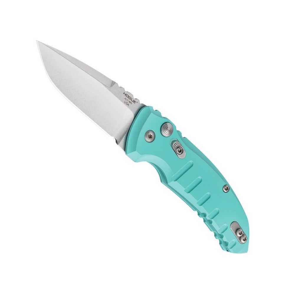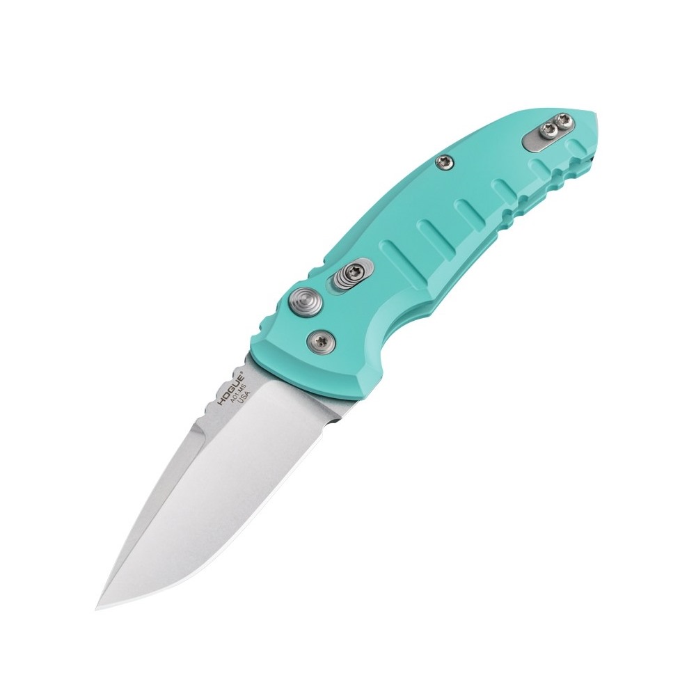 A01 MICROSWITCH AUTOMATIC FOLDER 2.75 inch DROP POINT BLADE - TUMBLED FINISH, MATTE AQUAMARINE ALUMINUM FRAME