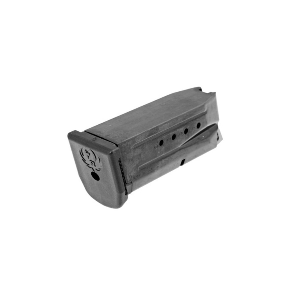Black oxide alloy steel, 10-round, 9mm Luger Genuine Ruger Factory Magazine is compatible with the Security-9 Compact pistol and the PC Carbine with the SR9 & Security-9 Magazine Well Insert installed. This magazine ships with the flat floor plate installed and a finger extension in the package. It is not compatible with the SR9 or SR9c pistol.